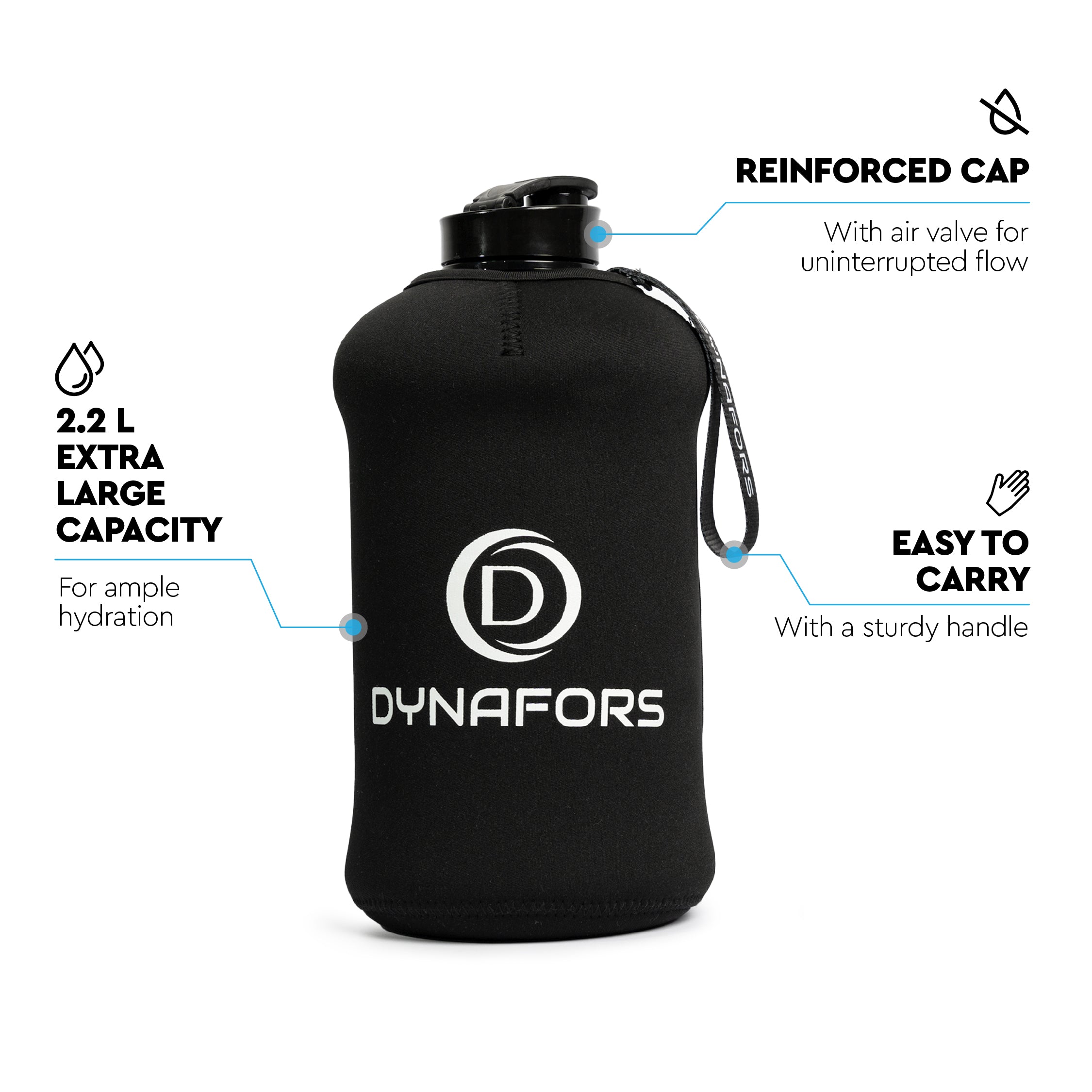 The size of the Dynafors water bottle is 2.2 liters.